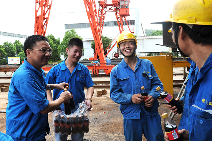 8月的舟山氣溫依舊持續攀高,生產(chǎn)現場(chǎng)作業(yè)溫度高達40-50攝氏度。為保證生產(chǎn)工作的有序推進(jìn),保障廣大生產(chǎn)一線(xiàn)員工的安全,集團黨委副書(shū)記、工會(huì )主席鄒元龍帶領(lǐng)工作人員,于8月14日、8月15日、8月16日三天,分別前往東海岸公司、通用公司、舟山船廠(chǎng)及大神洲公司生產(chǎn)現場(chǎng),發(fā)放飲料、棒冰慰問(wèn)一線(xiàn)員工,在炎炎夏日為他們送去了一絲清涼。此外,自七月起,各子公司分工會(huì )也多次自行組織送清涼等活動(dòng),積極開(kāi)展防暑降溫工作。
